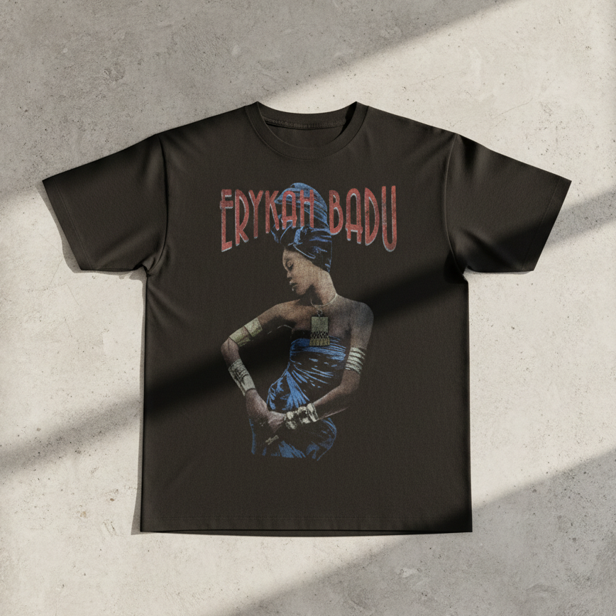 Celebrate timeless vibes with the Erykah Badu 2001 Tour Black T-Shirt. Crafted for comfort and style, this tee lets you rock a classic look while paying homage to a legendary music era. Perfect for fans who want to keep the groove alive every day.